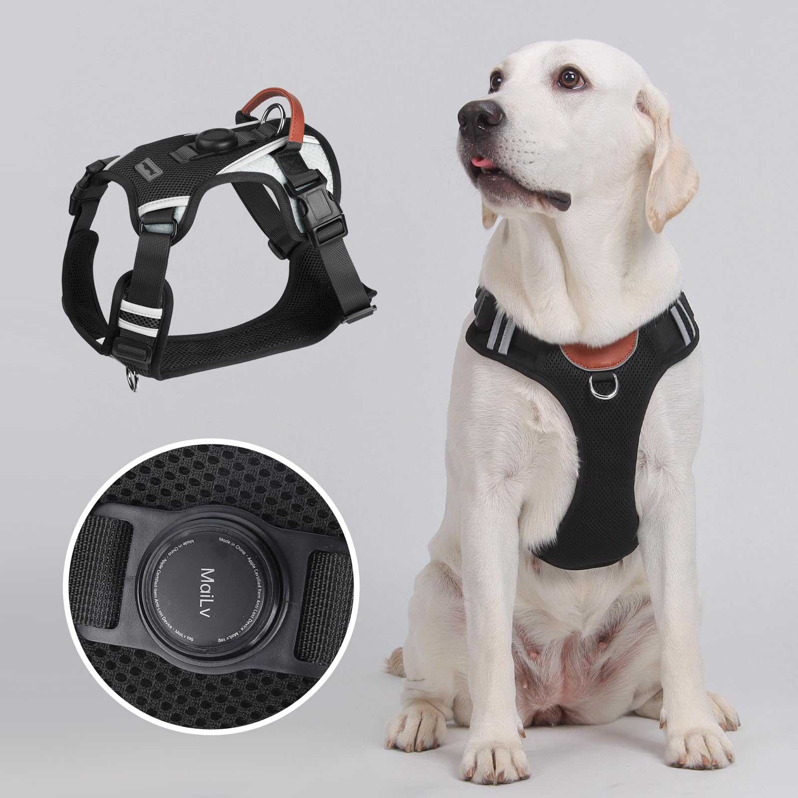 AirTag-Ready No-Pull Dog Harness with AirTag Holder-PawWave,Adjustable Reflective Vest for Medium & Large Dogs