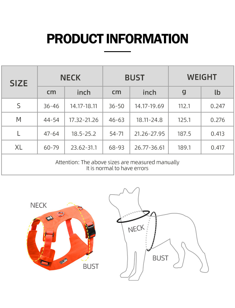 Heavy Duty Dog Harness, No Pull Design, Adjustable with D-Rings, Oxford Material