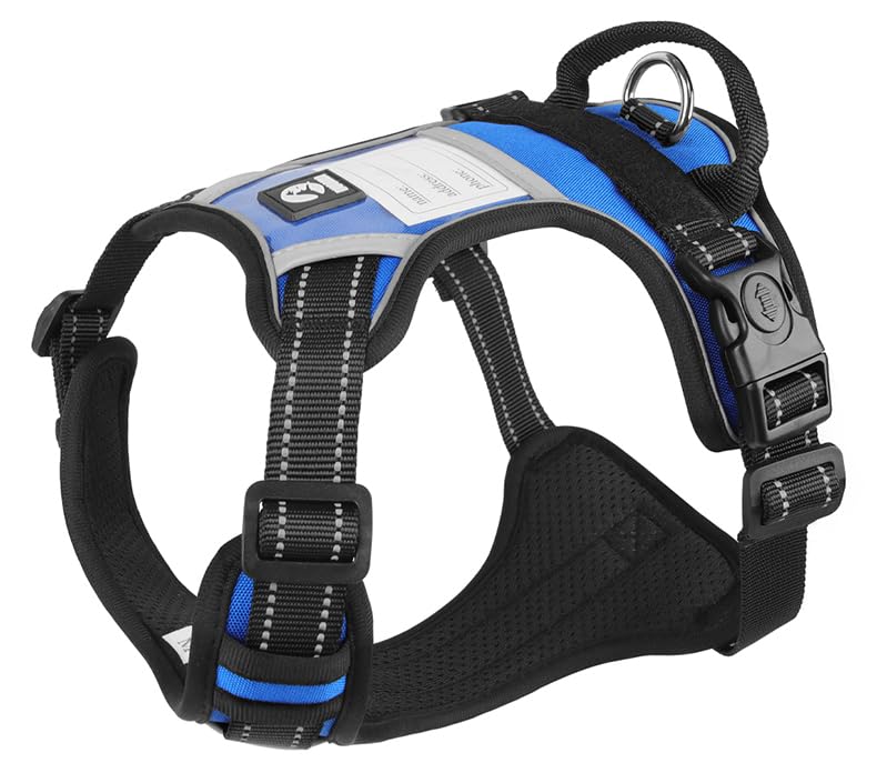 No-Pull Dog Harness with Safety Features, Reflective Stitching, Metal Ring, Blue and Black