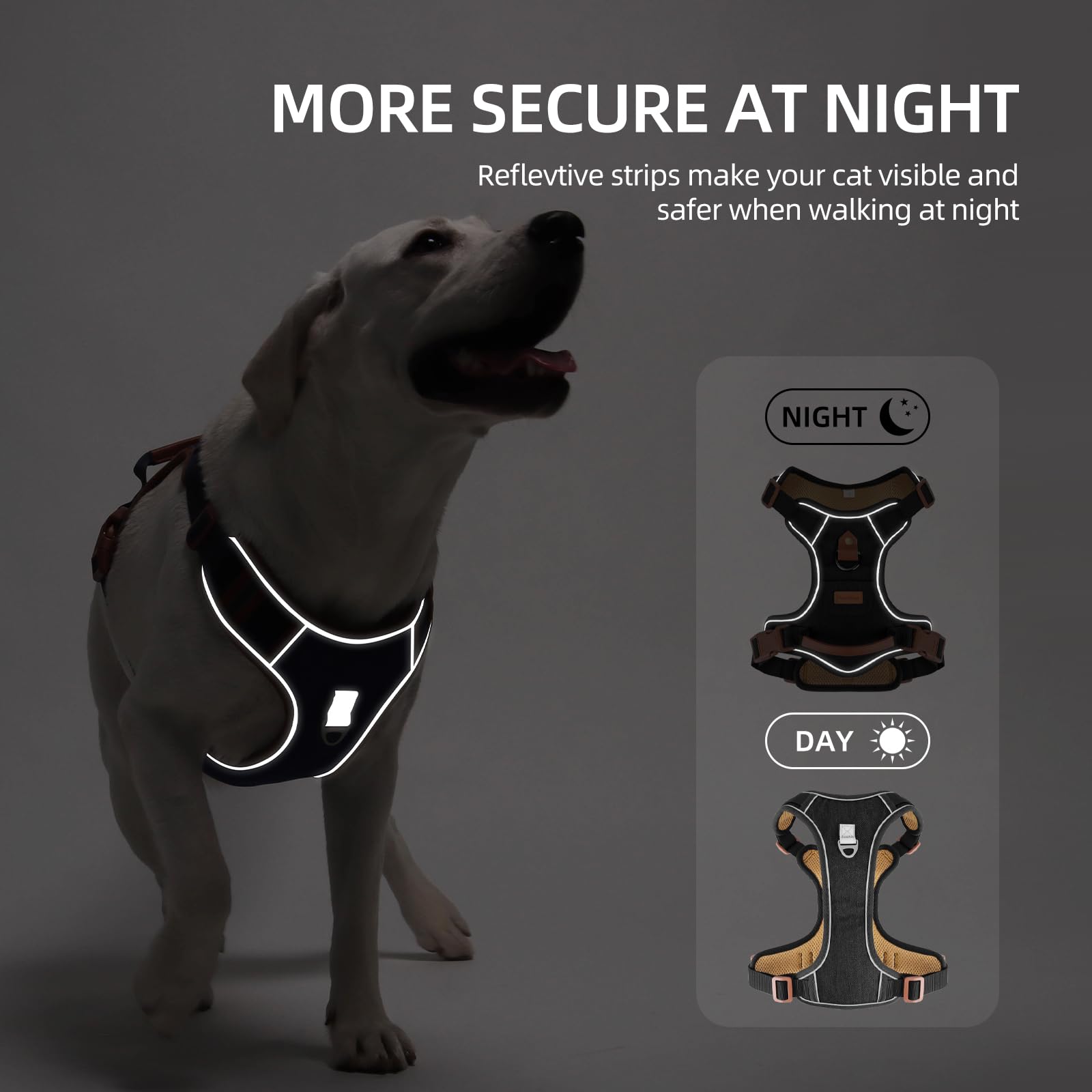 - ENHANCED VISIBILITY: Integrated reflective stripes improve nighttime safety, while durable metal hardware ensures secure leash attachment